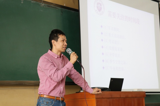 培训中,张慧勇老师围绕心理委员和心护员的职责与原则、常见心理问题以及常见心理问题的处理方法三大主题,结合实际案例生动阐述了大学生心理健康的重要性和心理委员设置的必要性;从大学生日常学习生活的细节入手,重点讲述了心理委员和宿舍长平时如何关注自身身心健康、如何开展朋辈互助、如何协助辅导员开展大学生心理健康教育工作等。